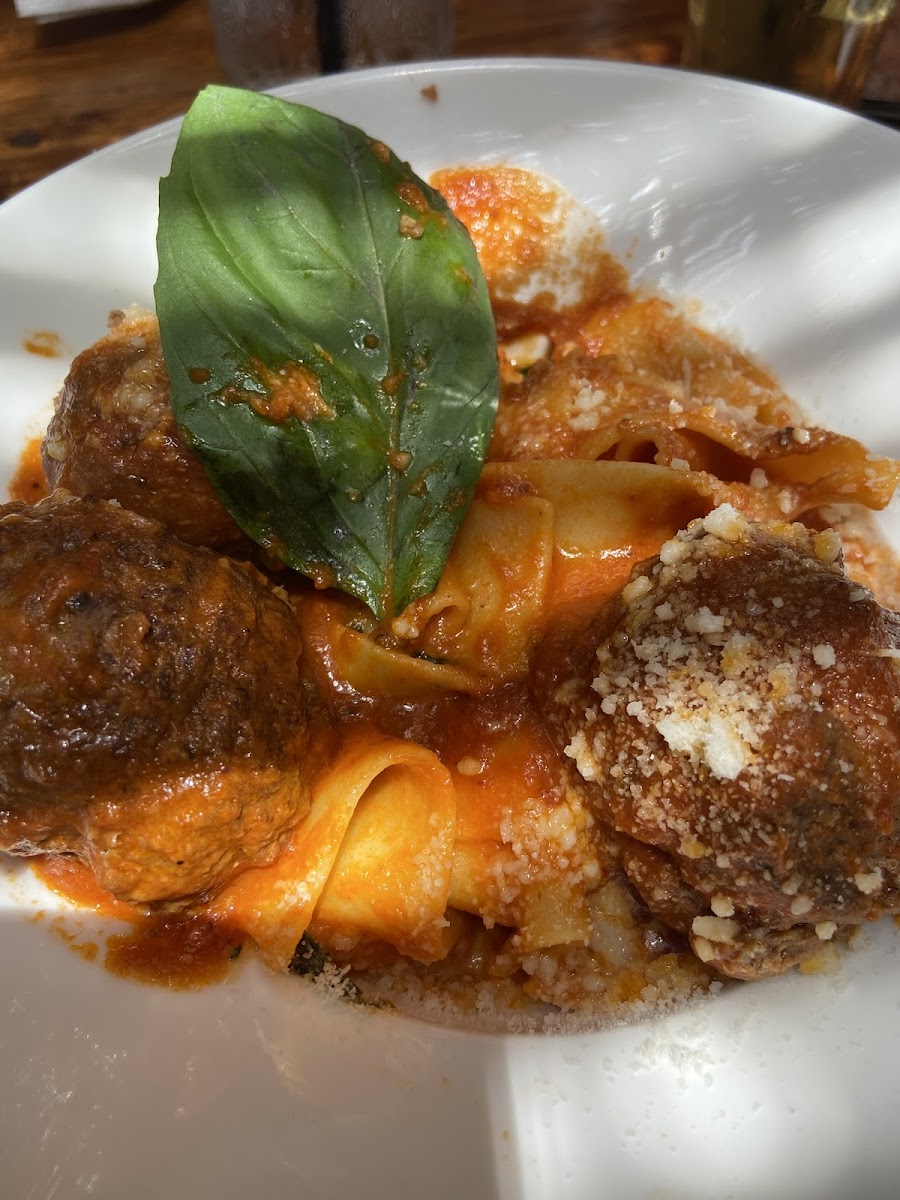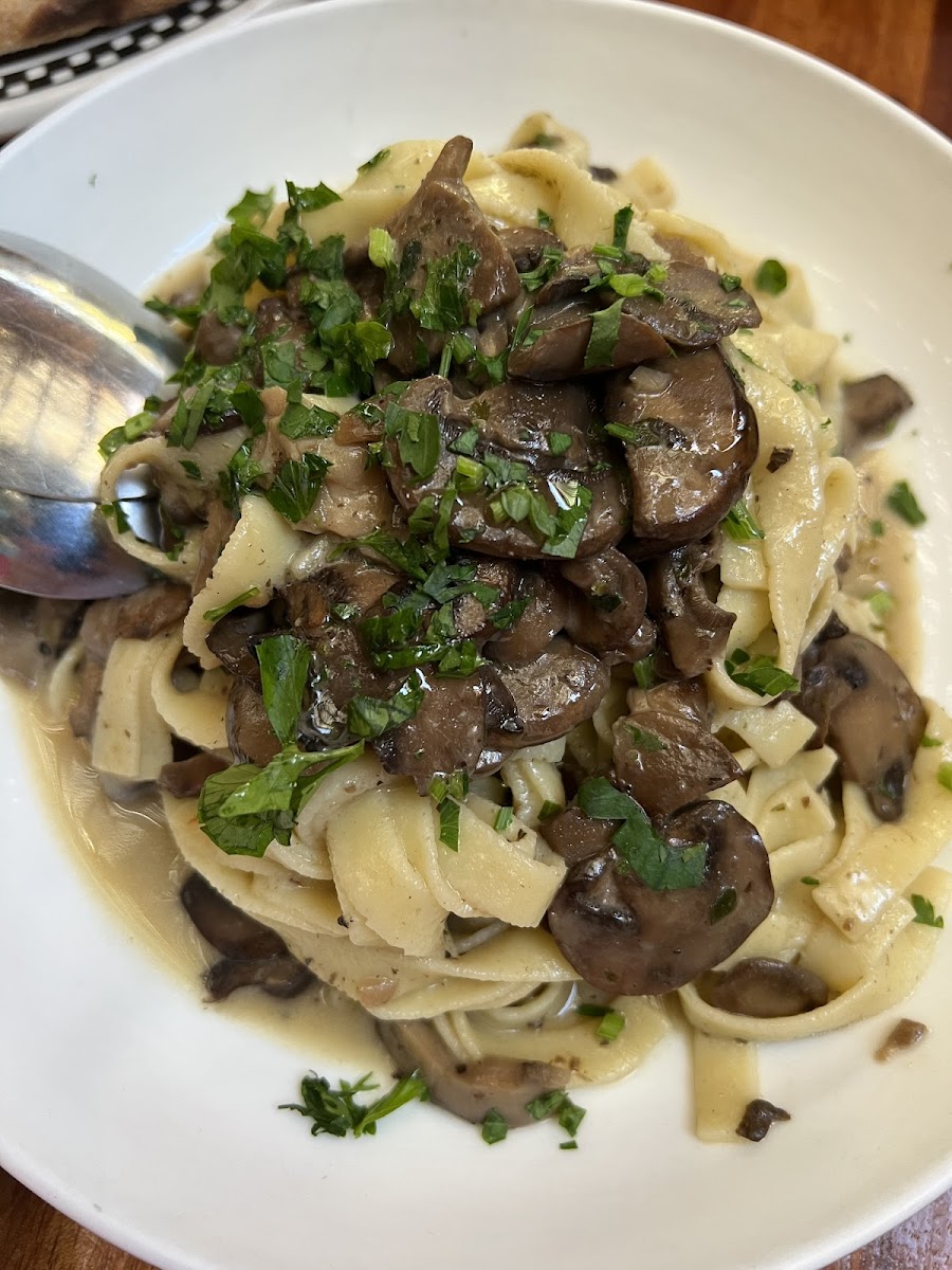 First time visiting here. We met a friend here for lunch. We started with their delicious bread. We ordered and I got the Meatballs and Parpadelle. My wife ordered the Cavatelli alla Norcina in Truffle cream sauce. But, she switched the pasta to Parpadelle like mine. Our friend ordered a lunch salad. As an afterthought, we ordered a pizza with mushroom, sausage and ham. We ordered it to take home. Funny thing was that the pizza came out first. The three of us ate all but a couple slices, immediately! It was so good. Then our mains came. My Parpadelle was perfect and the tomato sauce was outstanding!! The meatballs were light and flavorful. I really enjoyed my meal. My wife's Parpadelle with truffle cream was very good. She also enjoyed it a lot! My friends salad was good but big. She took half home. At the end, my wife and I split a Tiramisu. As good as the pastas were, this was the highlight. Overall this is a really enjoyable restaurant. From the homemade pasta, to the incredible pizza and the outstanding Tiramisu, it was awesome. I don't say this lightly! The servers were helpful and authentic! Well worth the drive across the valley!